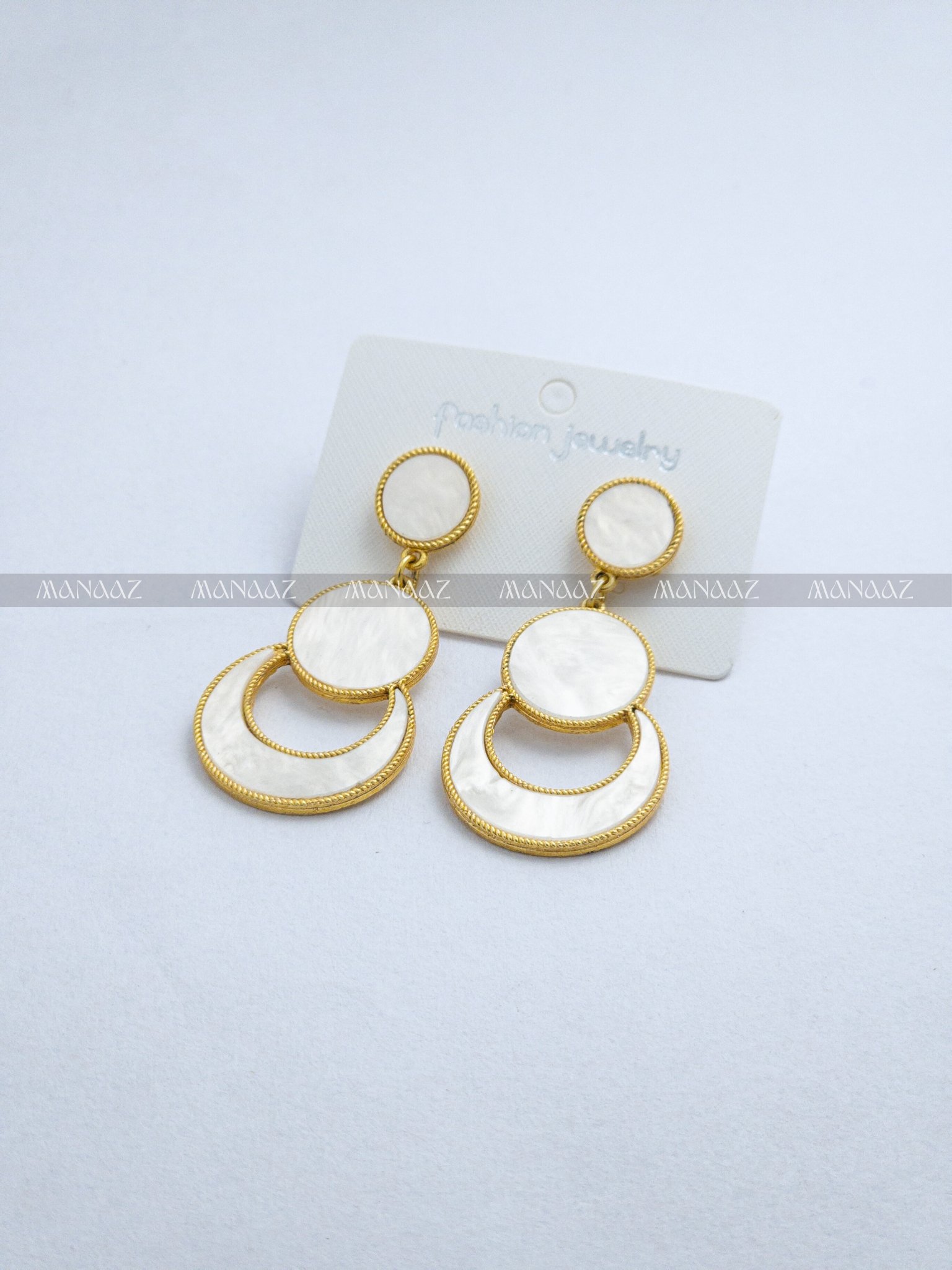 Elevate your style with the Chandrika Aura Layered Drop Earrings, a stunning pair that beautifully combines modern design with timeless elegance. These earrings feature a graceful multi-layer circular drop pattern highlighted with a soft pearl-finish centerpiece, creating a sophisticated and eye-catching look.