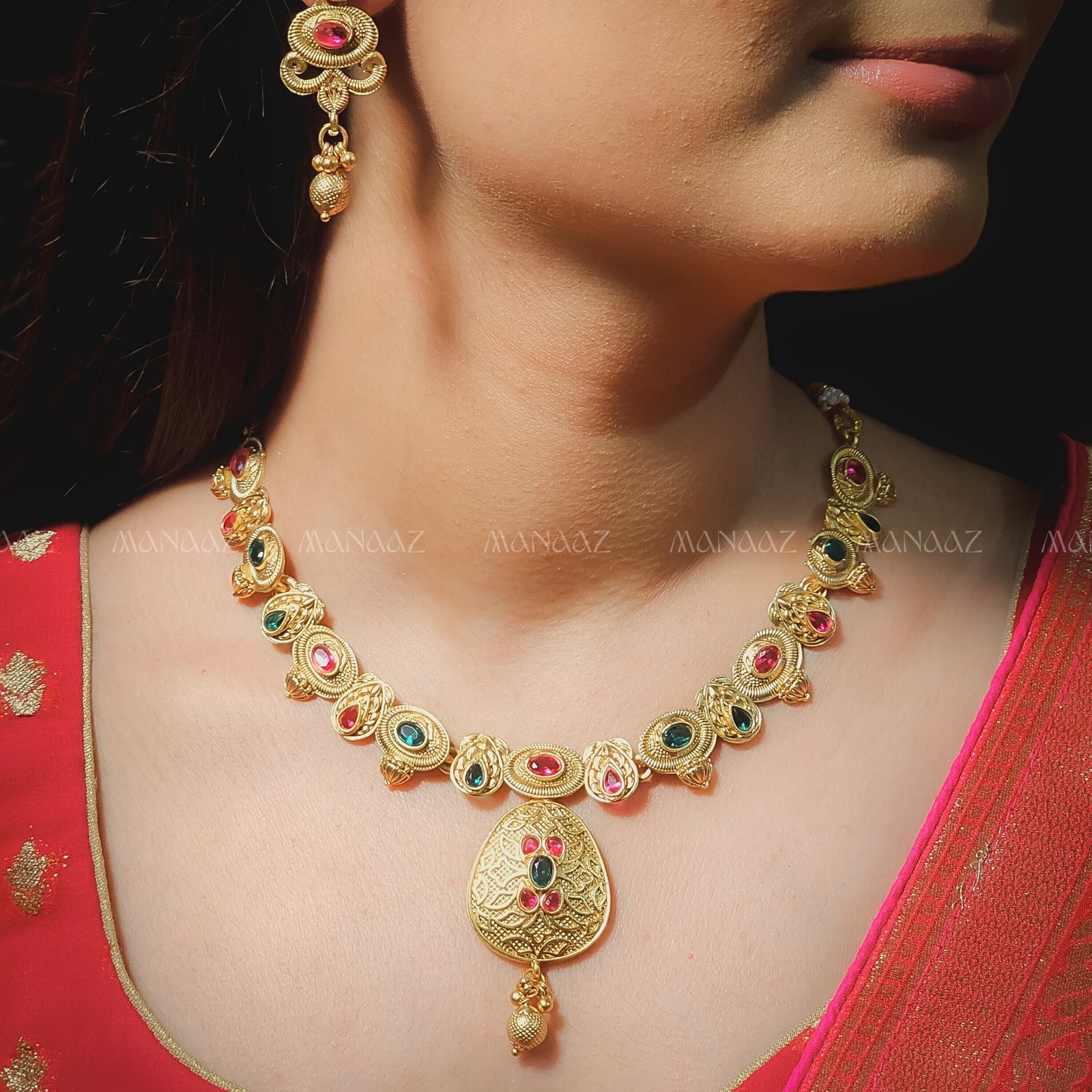 Crafted with premium-grade materials, this piece showcases high-quality plating and precision-set stones that offer durability and long-lasting shine. Designed to mimic the look of real jewellery while remaining lightweight and comfortable for extended wear.