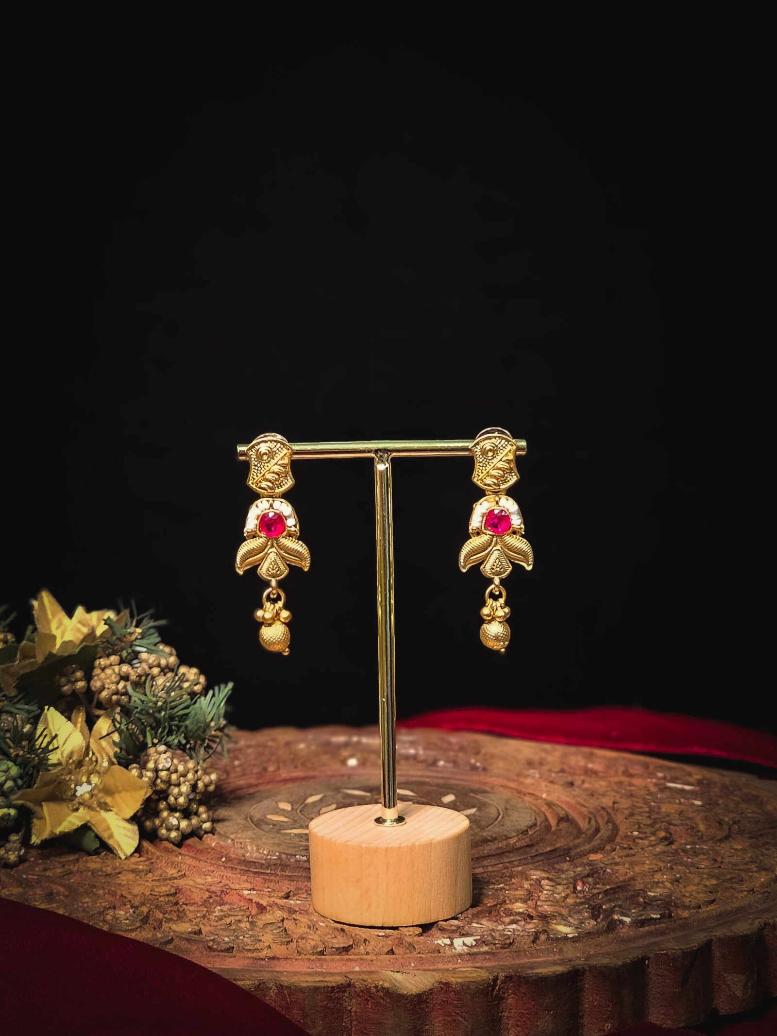 • Design Style: Traditional South Indian design featuring Leaf/Paisley motifs combined with prominent round stone settings