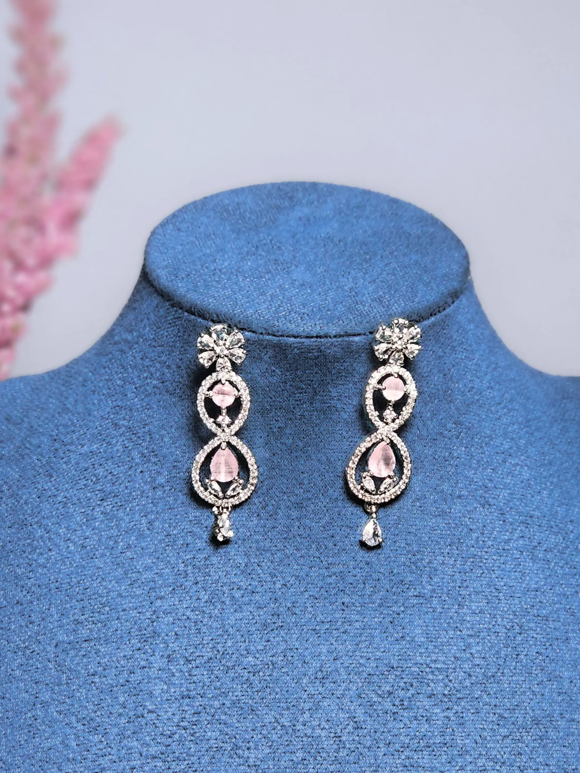 Soft pink stones set in an elegant infinity pattern, the Saumya Blush Infinity Necklace Set  adds a graceful charm to party wear, festive outfits and modern ethnic looks.
